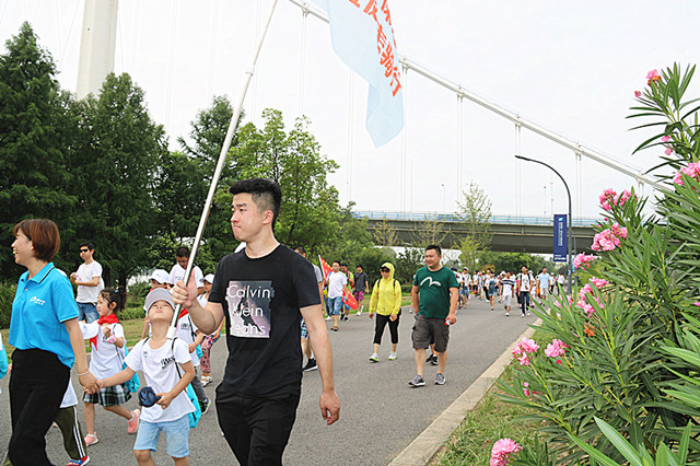 扬子晚报网 8月15日讯 (实习生 张刘刚 吴小巧 程晓薇 记者 郑幼明)既有公益骑行与健走,又能检测水质,还有精彩纷呈的互动游戏玩,8月12日上午,由扬子晚报携手国际水务中心共同举办的“为水而行感受家乡河的美——胜科环保之旅公益健走活动”,在江心洲生态科技岛环境优美的环洲马拉松赛道上举办,160多位市民参与此次活动。