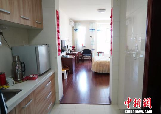 房间里电视、冰箱等生活用品齐全。 刘湃 摄