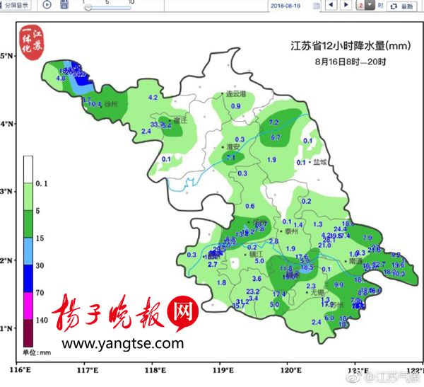 “温比亚”还在海上,很多地方都是“蓝天白云突然暴风雨”,根据江苏省气象台的统计,16日08时-20时,受台风“温比亚”影响,江苏大部分地区出现降水和大风天气。如皋、溧阳、沛县等7个县(区、市)的10个乡镇(街道)降水量达到25mm以上,前三位分别是如皋丁堰镇39.5mm、溧阳社渚镇35.8mm、沛县县城34.1mm。东台、沿海、如东等24个县(区、市)的44个乡镇(街道)(占全省3.5%)出现8级以上大风,前三位分别是连云港高公岛10级(26.1m/s)、东台东沙岛9级(22.3m/s)、海门蛎蚜山9级(21.6m/s)。