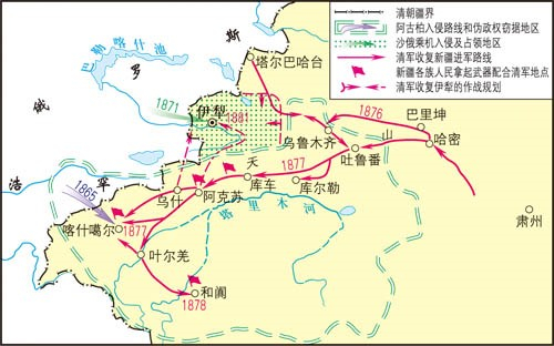 19世纪中叶,新疆面临着被英、俄肢解的危险,1874年,清政府任命左宗棠为钦差大臣督办新疆军务,决定收复新疆。左宗棠在收复新疆的过程中,提出了取消原来的军府制度,在新疆建省,实行与内地一样的行政管理的主张。1877年8月17日,他正式向朝廷提出此议,认为重新疆所以保蒙古,保蒙古所以卫京师,“设行省,改郡县,事有不容已者”。最终,清政府于1884年11月17日决定在新疆建立行省,左宗棠提出的新疆长治久安之策终被采纳,这对巩固祖国统一,加强西北边防,促进新疆建设,都具有深远的历史意义。