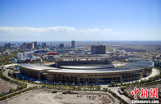 俯瞰中哈霍尔果斯国际边境合作中心。 中新社记者 刘新 摄