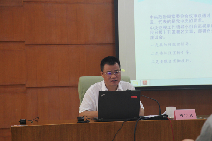 刘华斌同志以《深入学习贯彻党的十九大精神 巩固深化发展新时代巡视工作》为题,突出学习贯彻《中央巡视工作规划(2018-2022年)》,围绕关于制定实施《规划》的背景和意义;准确把握《规划》的精神实质,深刻领会党中央关于巡视工作新部署新要求;坚决落实政治巡视新要求,更好发挥巡视利剑作用等三个问题进行了专题辅导。