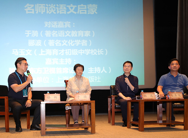 8月21日,由上海教育出版社主办的“名师谈语文启蒙”专题讲座在上海图书馆举行。学者郦波、著名语文教育家于漪和上海市育才初级中学校长马玉文共同就孩子的语文启蒙问题展开讨论。