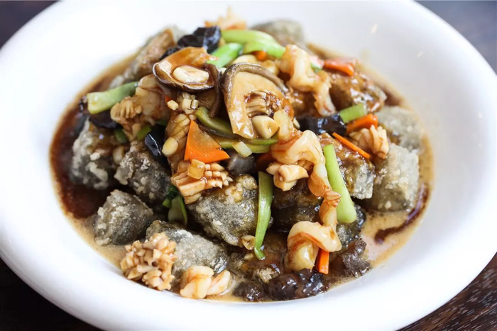 店里的招牌菜三鲜焖子,