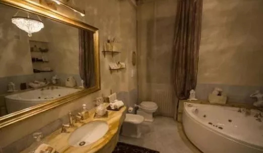 在室内温泉区,泳池周边墙上或地上未设置任何“安全出口”指示灯,虽然在通往客房区域的两处台阶上分别贴有“安全出口”字样,其指向的两处大门却被紧紧封死。