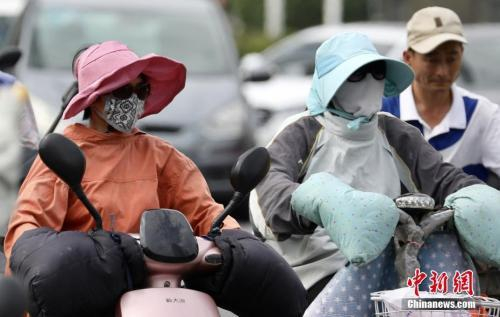 7月16日,南京市民“全副武装”骑车出行。当日,南京继续高温晴热天气。中新社记者 泱波 摄