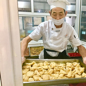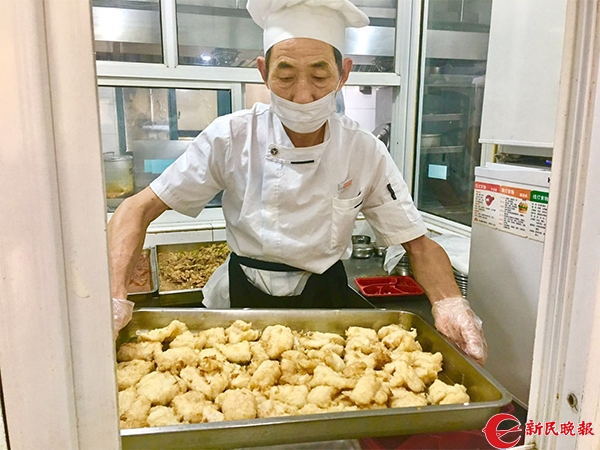 图说:颐养第一敬老院厨师做好的面拖龙利鱼。邵宁 摄