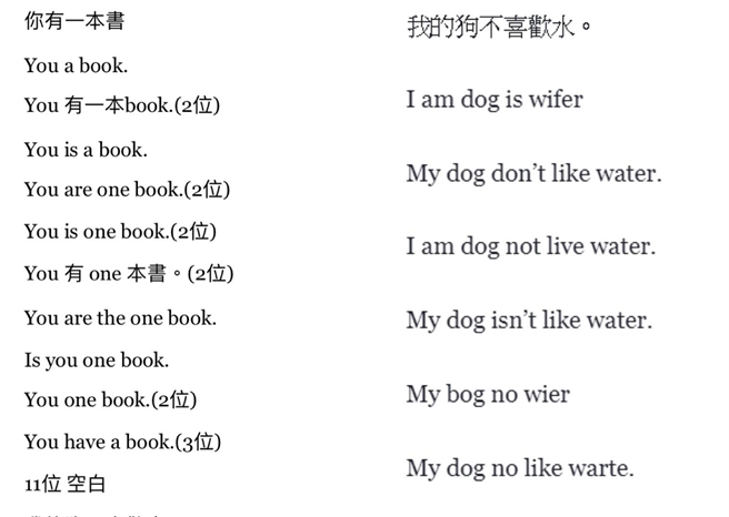 “我的狗不喜欢水”台湾中学生翻译如下: