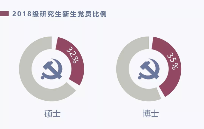 硕博新生中党员同学占比均为三分之一左右,博士研究生党员比例略大于硕士研究生。