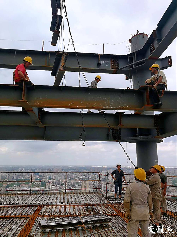 8月28日上午,记者在该项目目前最高作业面的第38层看到,现场有近200名建设者各司其职,正在忙碌着。