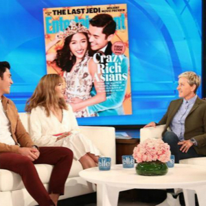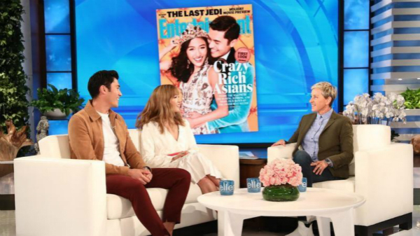 图说:《疯狂的亚洲富豪》主演参加美国脱口秀节目《艾伦秀》。GJ