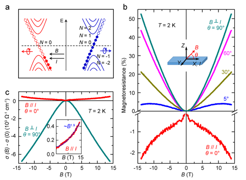 图3:Weyl费米子手性异常所产生的负磁电阻行为
