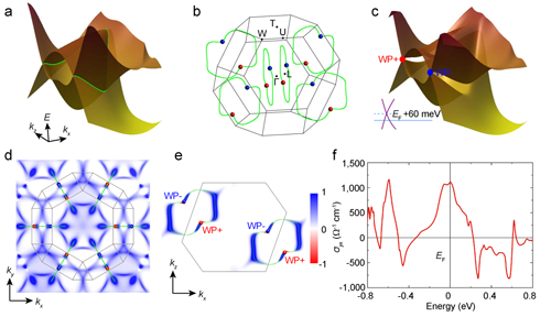 图2:Weyl节点、贝利曲率及反常霍尔电导的理论计算