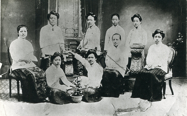 冯缦云与部分杭州浙江女子师范学校的同学合影,摄于1919年前后,左侧坐地者为冯缦云,右侧坐地者为杨之华。