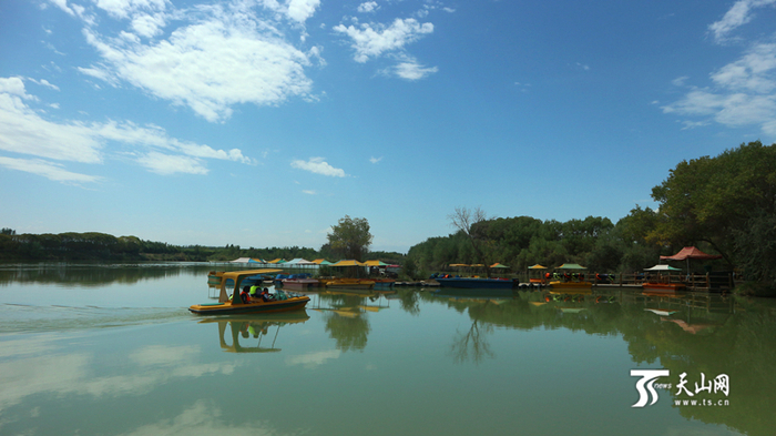 天山网泽普讯(记者王娜摄影报道)长寿民俗文化村位于泽普金湖杨景区内,四面环水,绿树成荫。8月27日,经过前一天的细雨,村里的空气更加潮润清新了,一波一波的游客,鱼贯进入景区。