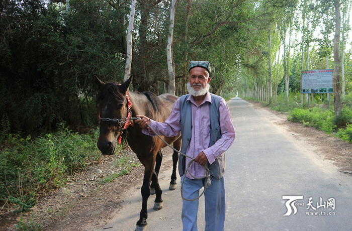 阿吾孜老人说,他年轻时喜欢养马、参加叼羊比赛,年纪大了以后不能参加激烈的体育赛事,正好赶上长寿民俗文化村景区需要马车夫,他就拉上自家的高头大马,用政府补贴的5000元钱,制作了一辆漂亮的马车,每天赶马车拉游客在景区游玩。而老人赶马车穿行在林荫道上,也成为长寿民俗文化村一道靓丽的风景。