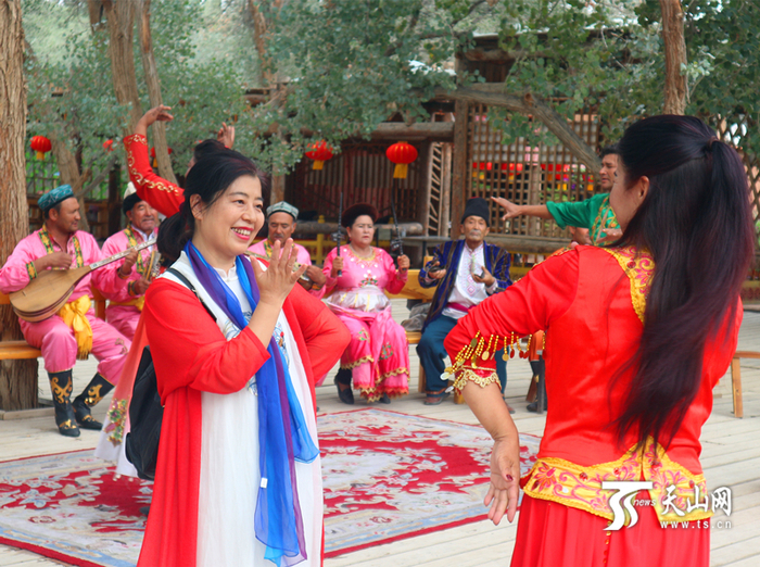 游客在长寿民俗文化村跳麦西热甫。