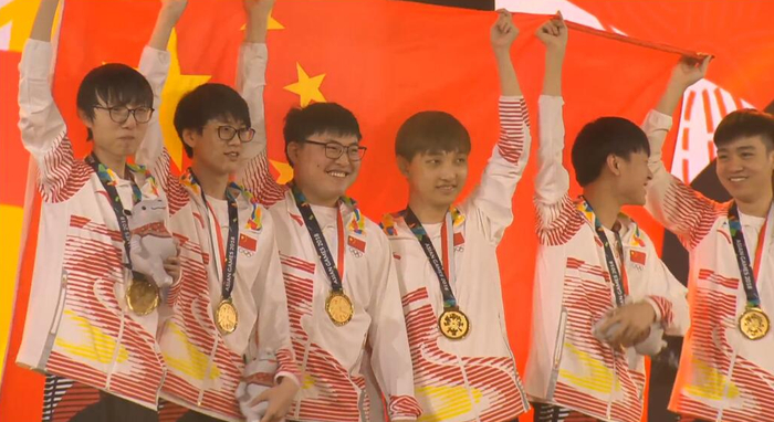 简自豪、苏汉伟、刘世宇、严君泽、田野、史森明六位选手为中国拿下了最后一枚亚运电竞金牌。