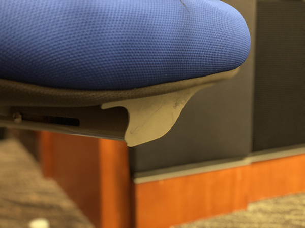 这张儿童学习桌配套的椅子底部边缘可以划破西红柿表皮。本文图片均为 澎湃新闻记者 邹娟 实习生 吴娅 摄