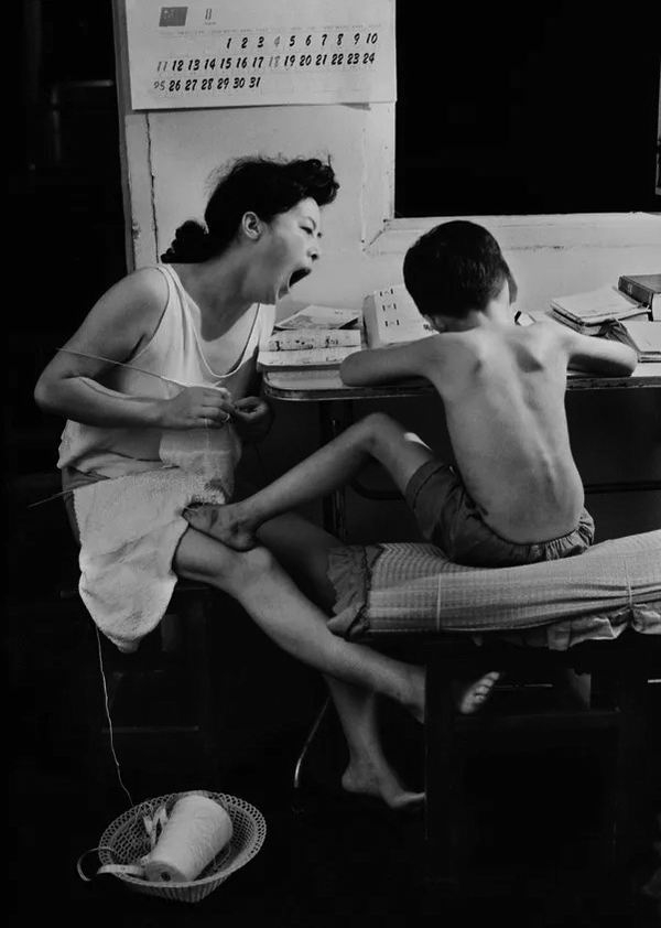 1991年夏,江苏南京大厂区九村,一位母亲晚上陪孩子写作业。2017年12月,中央经济工作会议将“着力解决中小学生课外负担重”列为非补不可的“民生短板(田鸣/摄)