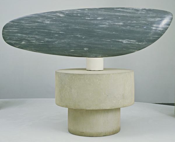 这是布朗库西制作的最长的《鱼》,从这块加长的椭圆形中可以看出,艺术家对动态的痴迷。蓝灰相间、夹杂斑点的大理石,不仅看起来像游动的水生物体,它还曾被放在一个旋转轴上,有规律地转动。作品静止时,当人走近,它也会有所变化。由于表面为水平状,从某个特定角度看,它又能收缩成一条细线。