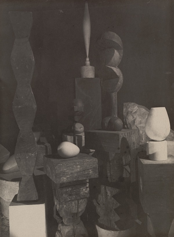 工作室中的《无尽之柱》《世界之初》《亚当与夏娃》《空中之鸟》,以及《女孩塑像》,摄影,1922