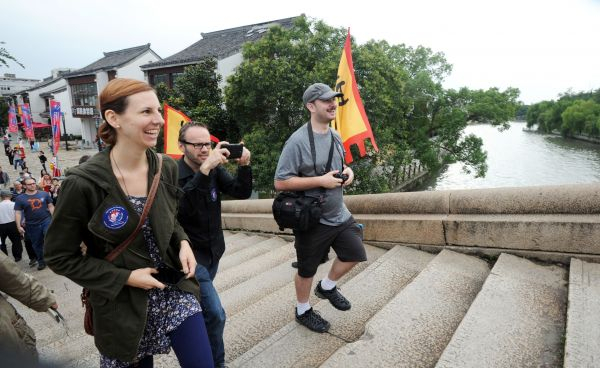 资料图:美国游客在苏州盘门景区游览。新华社发