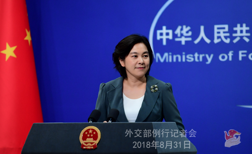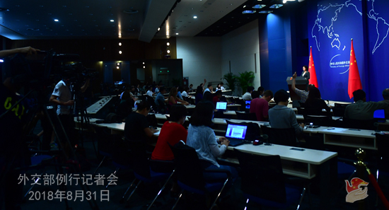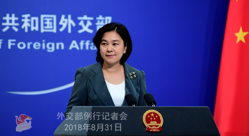 原标题:2018年8月31日外交部发言人华春莹主持例行记者会