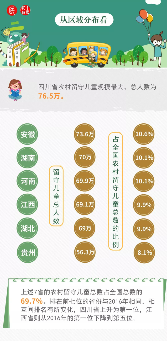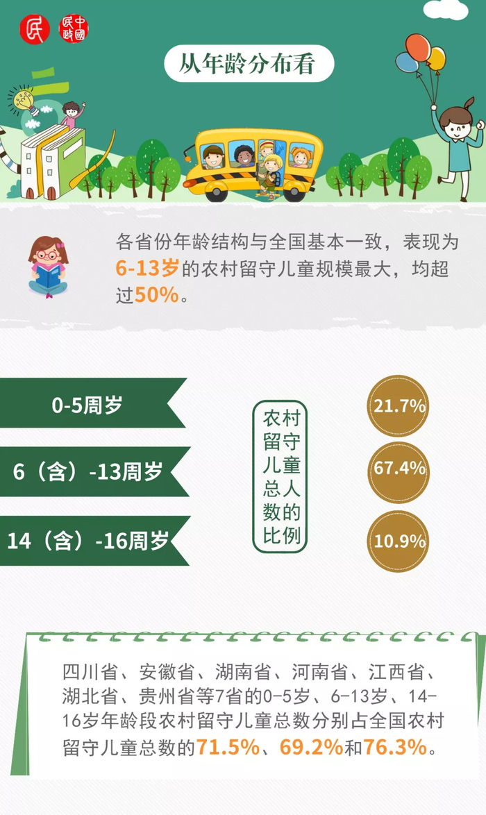 原标题:图说农村留守儿童:全国现有697万 6至13岁占近七成