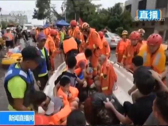 央视记者 张琦:我现在所在的还是谷饶镇受灾最严重的新兴社区。从我身后大家可以感受到,从整个(水)面上来看,现在这里积水下降的趋势还不是很明显,这里面最深的地方还是有两米深,但是我们在一些局部的地方还是可以看到积水在缓慢地下降。比如说我现在所在的地方积水是没过我的膝盖,(相比)在今天上午我们做直播的时候(积水)要往岸上退后了两米左右的距离,所以说积水还是在消退。