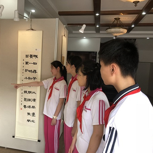 图说:男生袁嘉浩用一场个人书法展迎接新学期的到来 校方供图(下同)