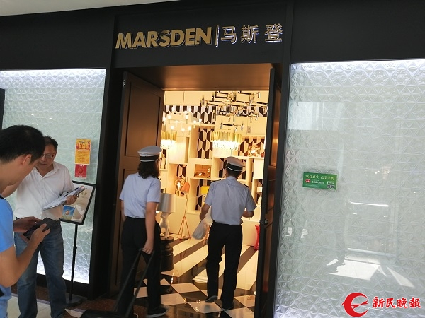图说:市质监局执法总队检查上海灯具城的”马斯登“门店 新民晚报记者 罗水元 摄