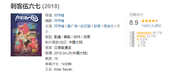 但是今年暑假偏有一部嬉笑贱萌的“不正经”的动画,横空出世,打平S级IP《魔道祖师》,一举拿下豆瓣8.9分,令人侧目——它就是《刺客伍六七》。