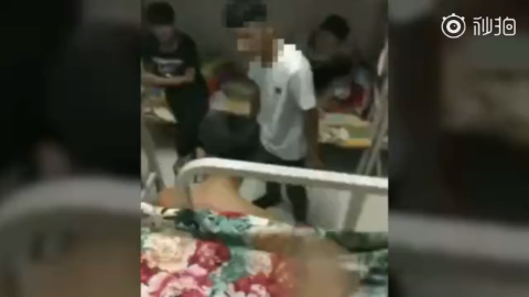 视频显示,四名男生在宿舍对一名赤膊男生进行扇耳光、踹肚子等暴力举动,被打者不断向打人者辩解,仍遭到殴打和辱骂,一度捂着肚子蹲在地上,未参与殴打的人在旁围观。