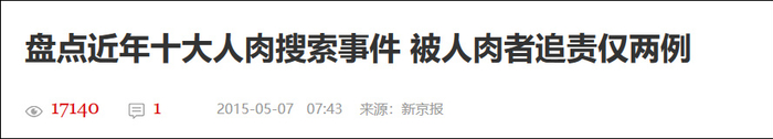 新京报曾在2015年盘点了近年来十大人肉搜索事件及追责情况,其中大多由被人肉者提出希望事件平息,但不追究责任,当然其中有被人肉者自身也造成社会不良影响。