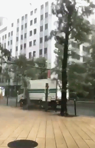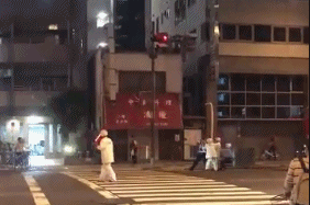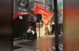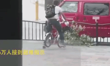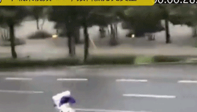 刮强台风还得要去送外卖的小哥,直接被甩出摩托车。