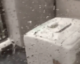 好不容易清理完想洗个衣服,发现洗衣机也被吹得合不拢“嘴”。