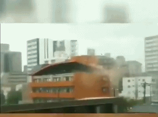 为了防震,大部分日本建筑为木质结构,较轻不禁风,结果被25年一遇的超强台风一刮,屋顶掀了,墙体塌了,挂着高压线了还一路火花带闪电……