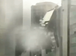 可现实却比电影残酷得多,有位网友无意中拍到了一名女子在狂风中用双手抵着房子对抗台风,结果房子被瞬间吹倒的画面。