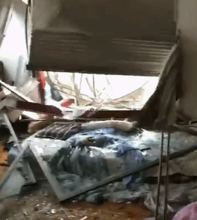 虽然女子及时避开没被房屋碎片弹飞,但整个家都没了……