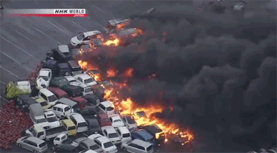 4日下午3点,兵库县上的一个二手车展厅中约100辆汽车被烧毁,直到晚上9时才被扑灭。