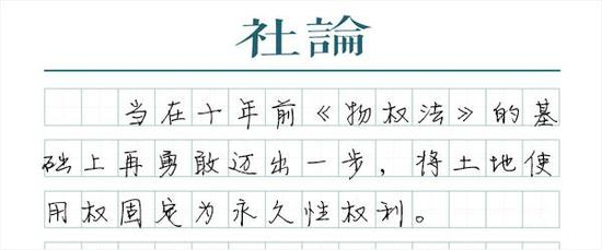 实现“恒产恒心”,还需拿出最坚决的改革决心。当在十年前《物权法》的基础上再勇敢迈出一步,将土地使用权固定为永久性权利,而不再以70年一个轮回的形式困扰国人。如果仅仅规定“续期费用的缴纳或者减免”将另做法律、法规安排,那么可能模糊了原来的《物权法》确定的产权稳定性。