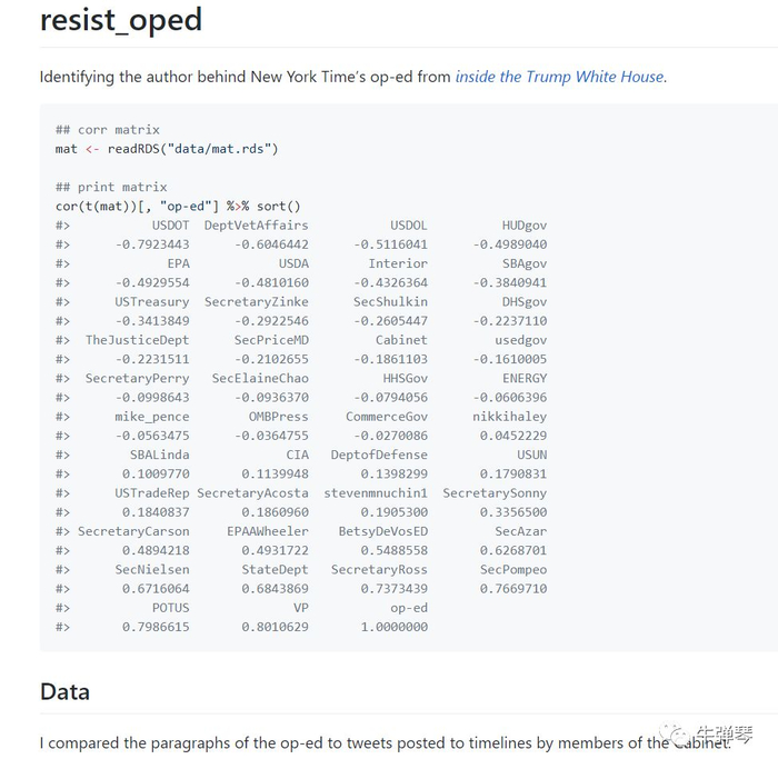 有个程序员在GitHub公布了一个脚本。他说将这封信与每个内阁成员的文风,进行了仔细对比,最后发现,关联系数最高的一个人,居然是副总统彭斯!