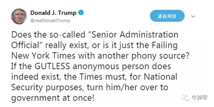 1、这是一篇匿名文章,但作者身份是特朗普政府高级官员。