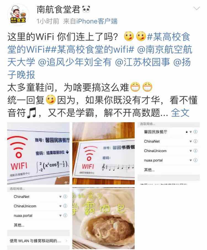 南航食堂网红WiFi密码数学题答案是多少?本报记者算给你看