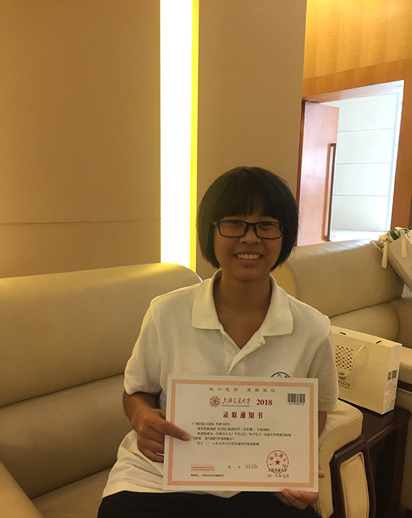 在贺宇轩的身旁站着一名齐耳短发的仫佬族姑娘,她叫李想,也是上海交大2018级本科新生。