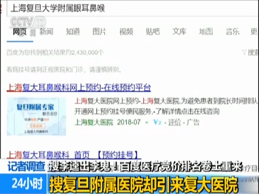 上海市工商局广告处副处长 李华:这种以本地知名医院名称作为关键字发布付费搜索广告,并且在广告内容中大量出现与知名医院相关联的要素,引起消费者误解。