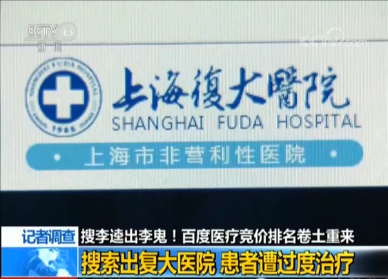 今天(9月8号)晚上,上海市工商局表示,复大医院利用百度推广,将本地知名医院的关键词作为搜索关键词,以提升自己医院的搜索排名。其行为涉嫌虚假宣传,上海市工商局检查总队已立案调查,并将依据《中华人民共和国反不正当竞争法》对其处罚。此外,工商部门已要求复大医院立即停止违法行为。