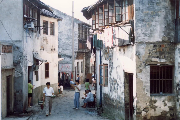看似江南水乡风情的老街,实际生活之脏乱差,只有住户才有体会。像生活用水,要么靠水井,要么靠马路上的“公共自来水”;公共卫生设施几乎没有,主要靠马桶。胡荣福回忆:“有的在河边洗,有的倒在化粪池里。”江南多雨,南浩街这样的低洼地区,自建房大多阴暗潮湿。在胡荣福拍摄的照片里,经年累月风吹雨打下老屋墙壁斑驳,苏州特色的粉墙黛瓦变成了大花脸,显得十分破败。