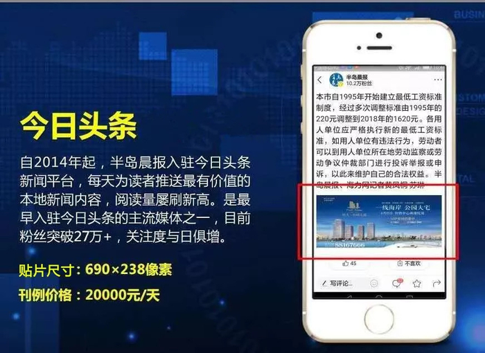 2012年8月28日,半岛晨报开通东北第一家媒体微信公众平台,是中国媒体微信联盟成员之一。作为半岛晨报移动传播的主力,半岛官微一直在全国新媒体各大排行榜上名列前茅,东北地区排名第一。如今,累积粉丝数达62万+的半岛晨报官方微信,更是赢得了越来越多的行业客户认可。